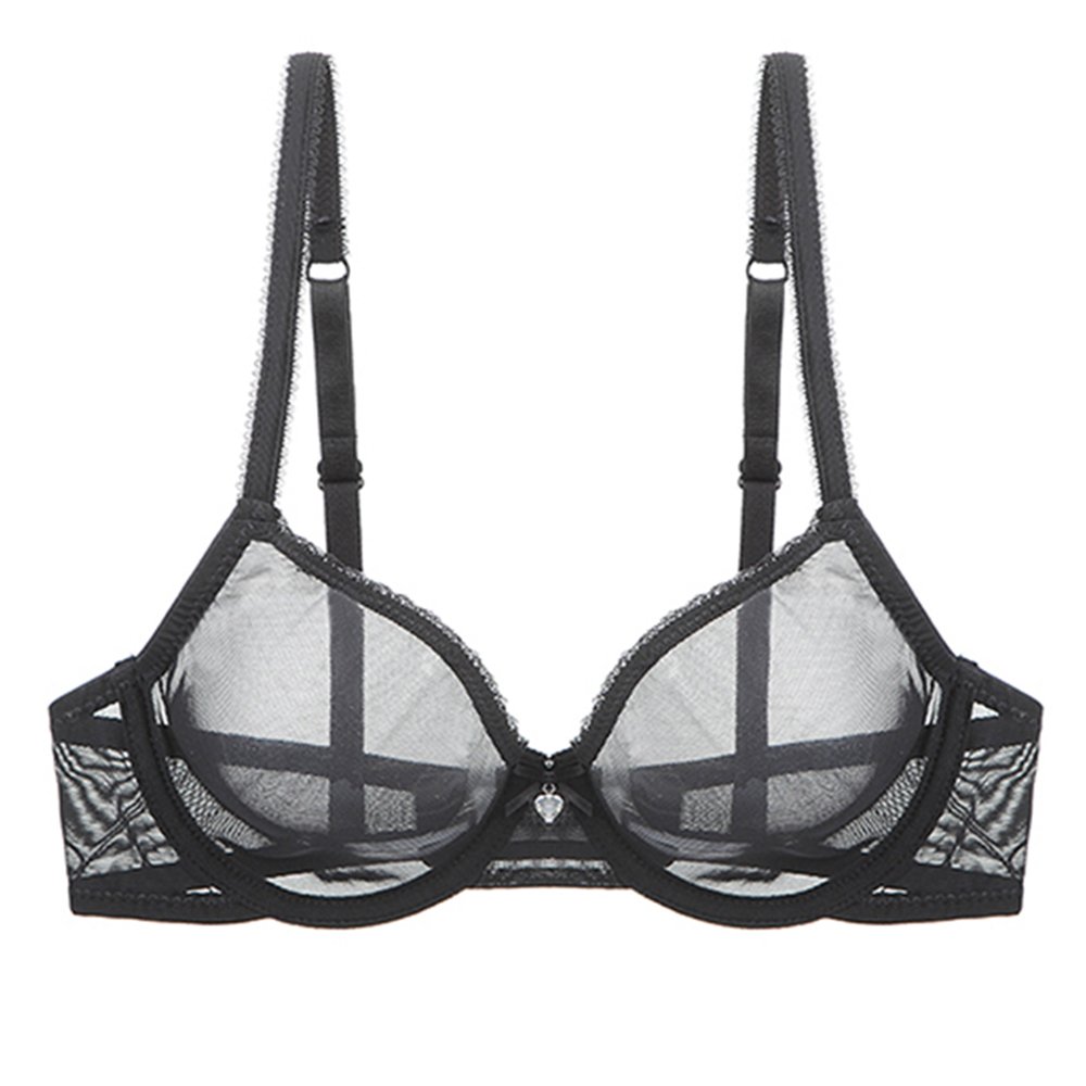 YBCG Sexy Black Women Bra Lace Mesh See Through Underwear Stretch Hollow Lingerie Lace Solid Soft Panties Bras For Women